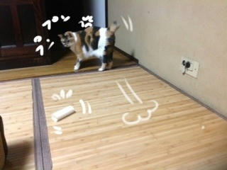 みい様、トイレットペーパーの芯で遊んでるんですね。