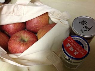 アビシニアンルームのハハさんが本返却で来訪、ポン酒とリンゴを頂きました。