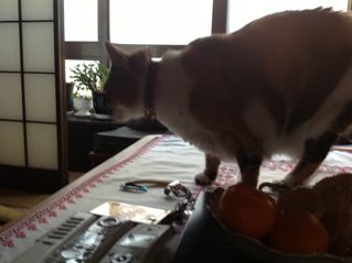 今までけして乗らなかった私の炬燵に乗っちゃったみい様です。