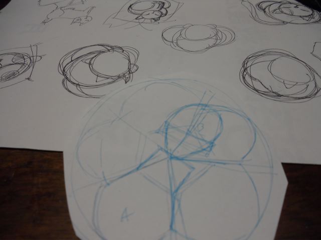後ろの方の絵は、猫の押し絵のかんざし用に描いてみましたが、なんか違う。