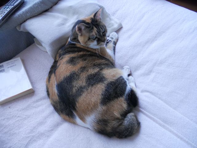 家の爺様、猫様に寝床を占領されています。