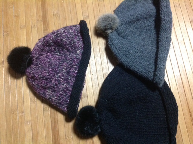 セーターをーほどいた毛糸で帽子を編んでみました。