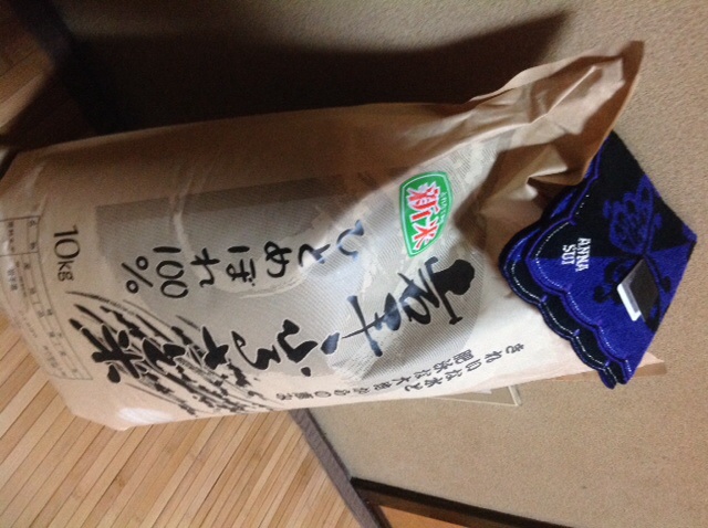 O塚さんからお米とアナスイのハンカチ