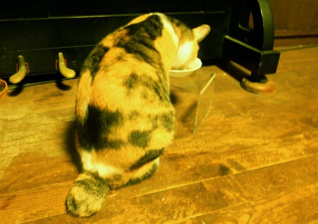 猫様お食事中の後ろ姿でした。