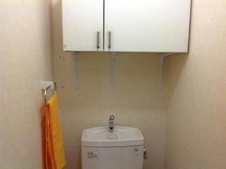 トイレの壁紙は戸棚を水平にしようと頑張った為に、あちこちがすり切れ、戸棚も66センチサイズに直さねばならないはめに……。
