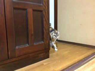 そんな苦労して取り付けた猫ドアですが、みい様は来て挨拶すると