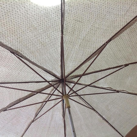 まずは作った物は、母親の古いパラソルを父親の古い夏物の着物をほどいて張り替えてみました。