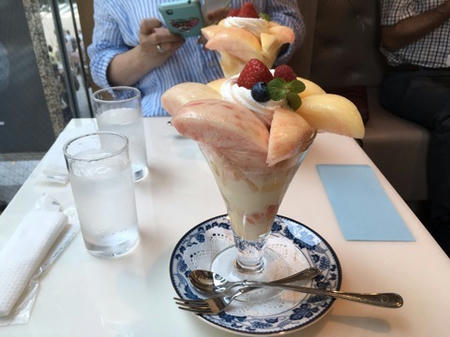 レジが混んでいたので、展示場の出口で購入できたマリンさんから頼まれた買い物して、田中屋で蕎麦食べて、千疋屋で桃のパフェ食べて帰宅。