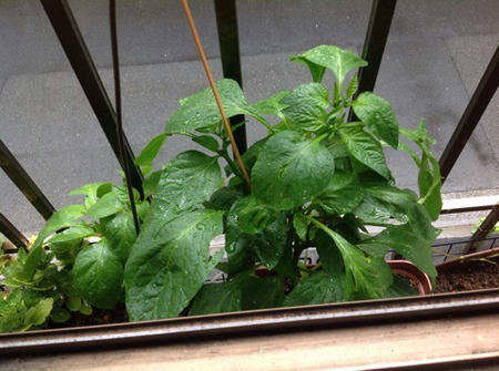 豆苗は枯れてしまいましたが、パプリカは元気です。花も実もならないけど。