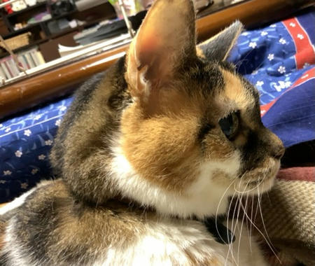 みい様は、慢性腎臓病のせいと加齢で、もうあまり目が見えないかも?らしいのですが、たまにですが五階まで上がって来たり、トイレもご飯も、炬燵に入るのも、特に不便はなさそうな日々です。