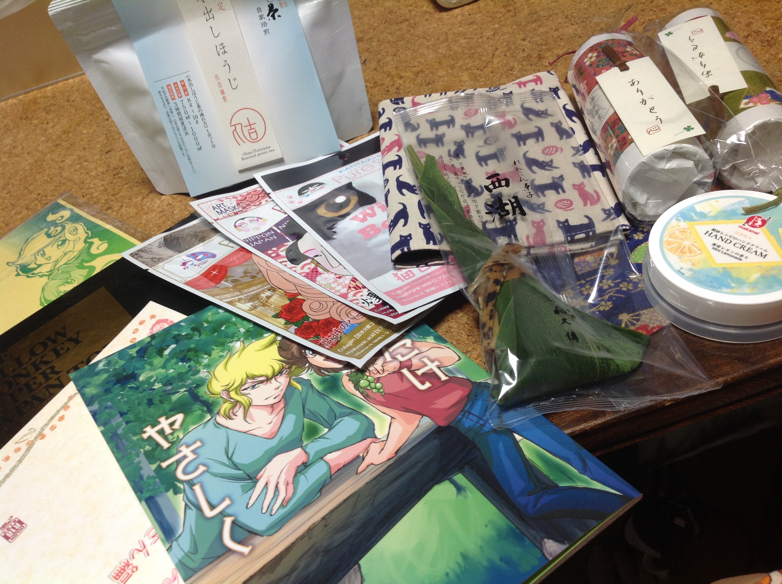 O野さんのメタル本もいただけたし、出目金庫さんからもライガー本や便箋いただき、I村さんにも西湖とお茶とイエモンの新曲CD付き写真集、O塚さんからもお茶と猫ブックカバーとハンドクリームいただき、ありがとうございました。