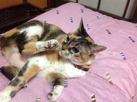 みいは出しっぱなしになっていた、客用布団に、早速寝ています。