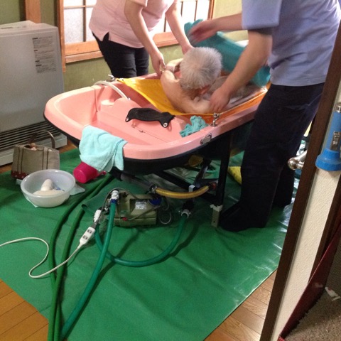 土曜日にはお風呂が来てくれて、三人がかりで丸洗いしてくれます。