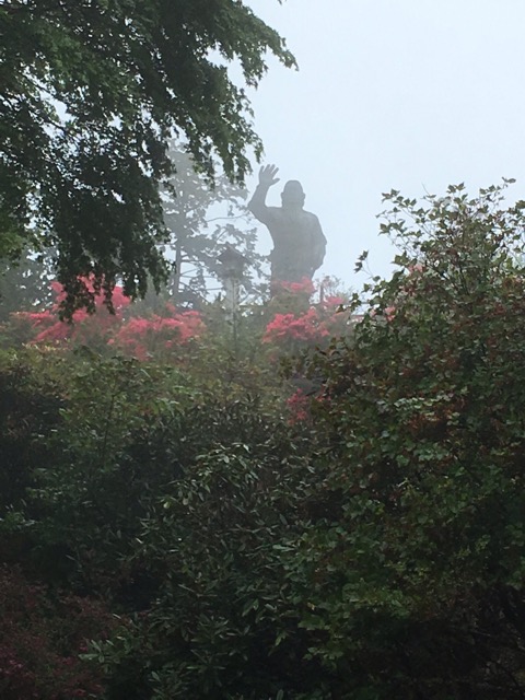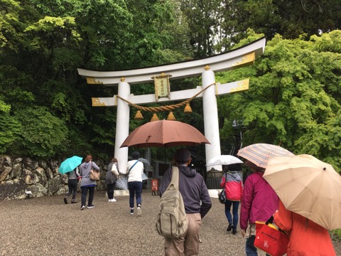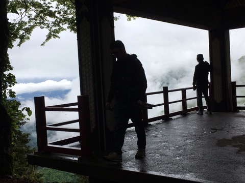 遥拝殿。奥宮が拝観出来る場所ですが、高い所怖い私には乗るのも怖くて無理。遠くからお参り。まあ、今日は雲海で奥宮は見えず。
