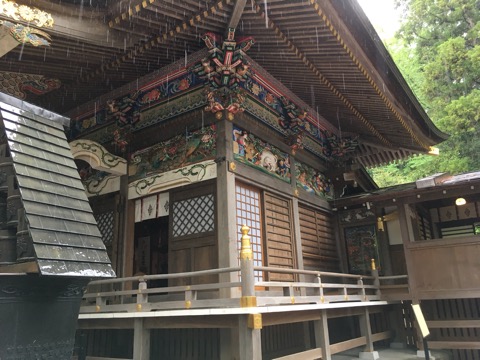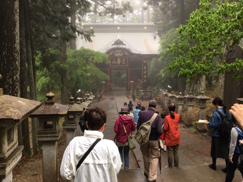 なんとか雨も止んで、木々の中を進み、雲海の山波が見える三峯神社へ。