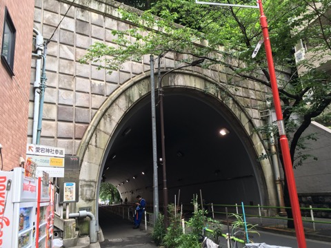 ここを登らなくても、横にもちょっとなだらかな階段やら、もうちょっと先には坂道、トンネルのところには放送博物館への階段やらエレベーターやらあるので、愛宕神社への道は選び放題。