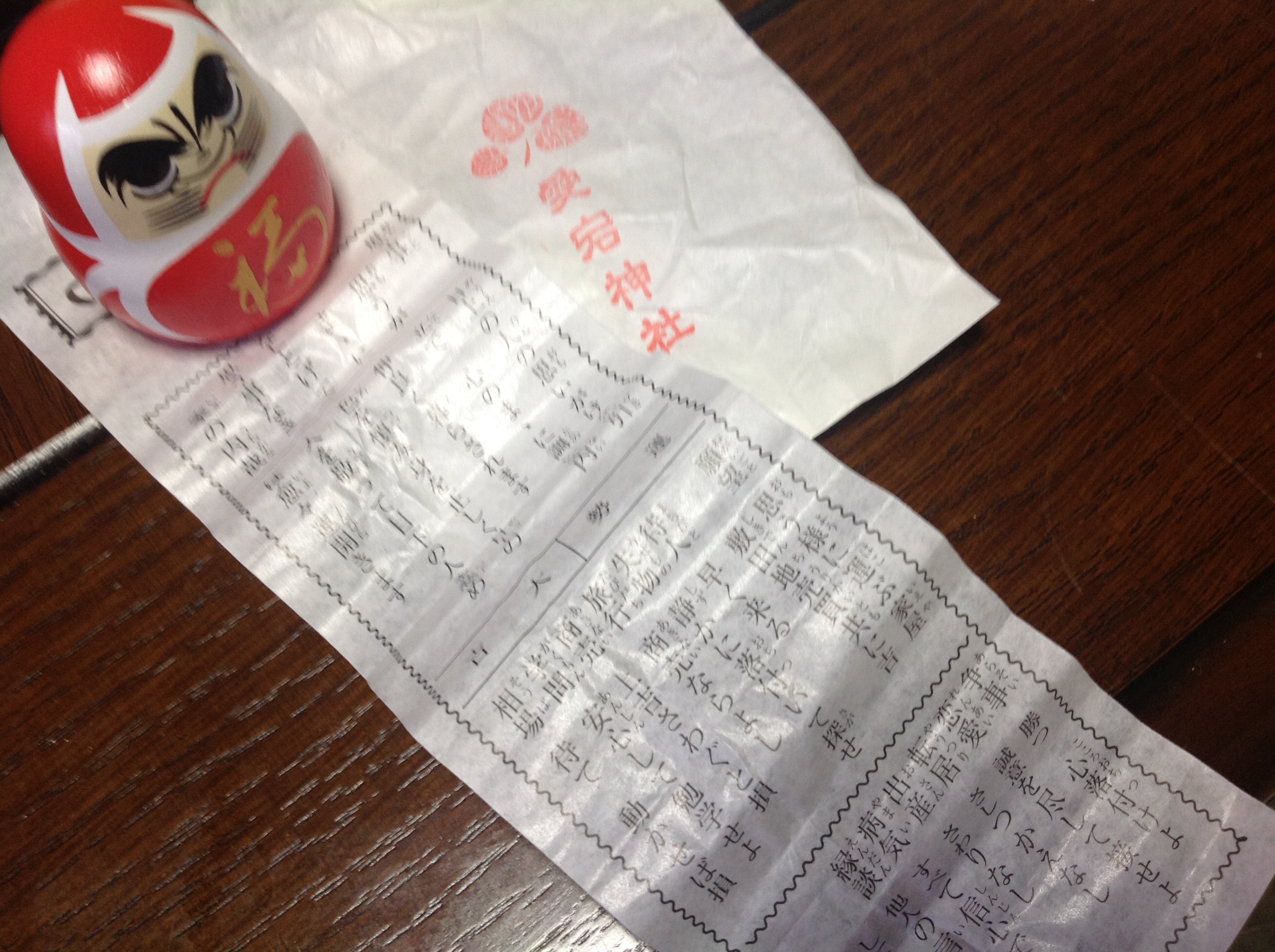 てな訳で買ったのは達磨さんのおみくじ、500円のみ。
