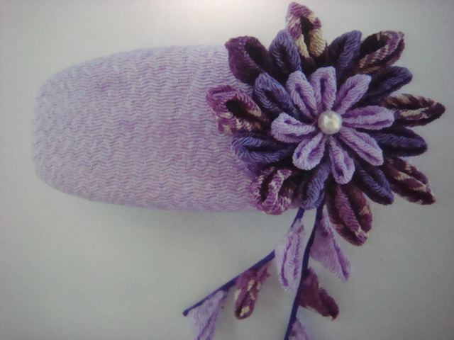 というわけで、今日はちょっとシックな旦那様のつまみ細工のバレッタです。