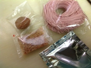 赤いそうめんに梅干し付きですよ。