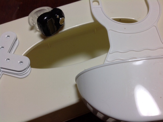 ティッシュペーパーボックスと指につけるカウンターと蛇口に吊り下げるスポンジ入れは100均です。