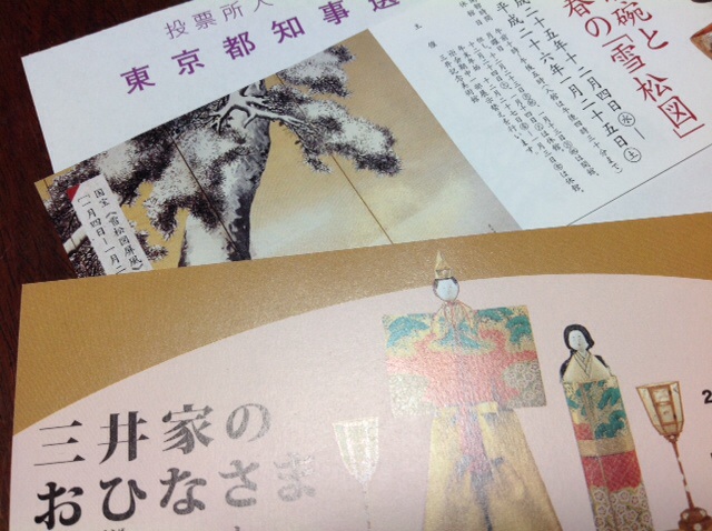 そんなプチ日曜大工をしていると、O川夫人から三井記念美術館のチケットと選挙の投票用紙が送られてきました。
