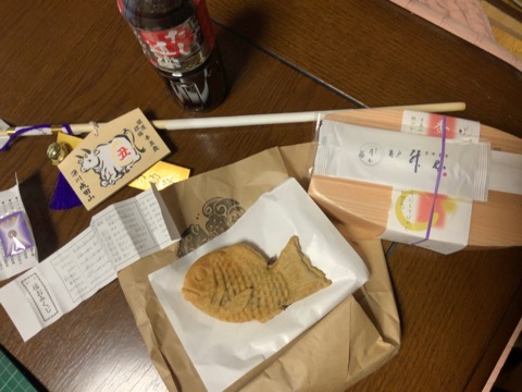 おやつの鯛焼きとか、升本さんで夕飯のお弁当買って、さっさと帰宅。