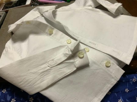 去年の十一月に作った人形のベニスに死すコスプレっぽい服は、ちょっと辛いので、ワイシャツを作り、着せ替えました。