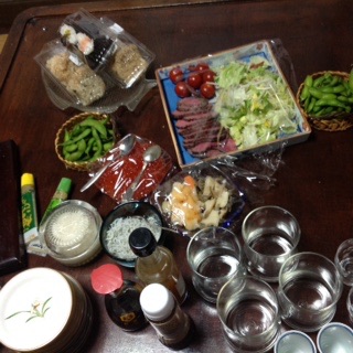 餃子、春巻き、サラダ類、鶏肉グリル、ワイン、和菓子といろいろ頂いたのに、写真なし。