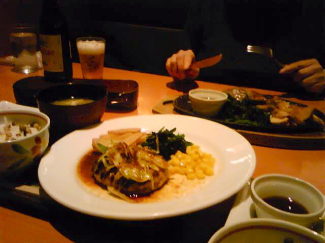 I村さんの和風ハンバーグとT田さんのステーキ