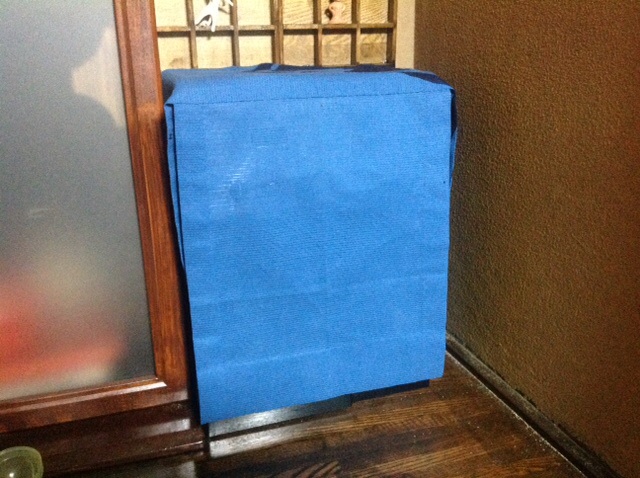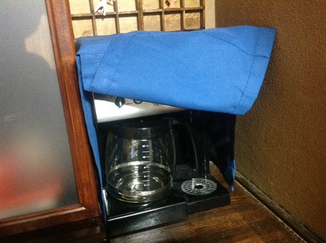 隙間に置いたジャストサイズのコーヒーメーカーが裸ん坊だったんで、服作り。