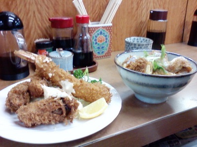 丁稚さんはミックスフライ、私はフグカツ丼。