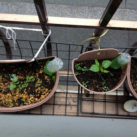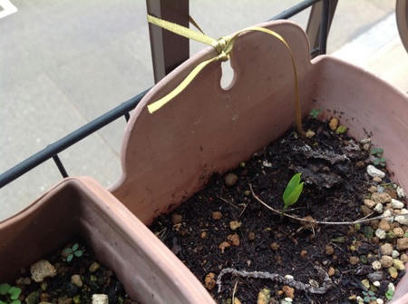 6月11日に植えた豆苗と八百屋さんで買ったパプリカから取った種。