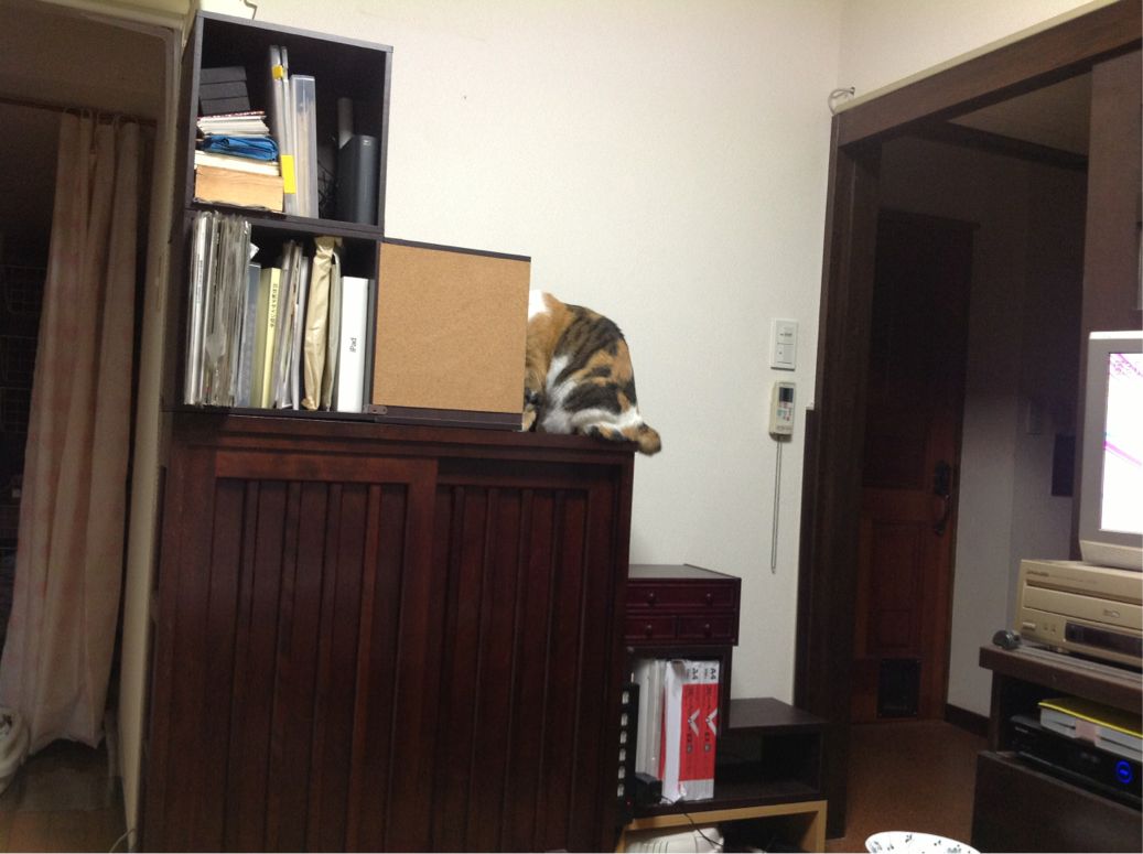 寒かったり暖かかったりで、気温の差があるこの時期、みい様は居心地のいい場所を探して、家中を放浪しております。