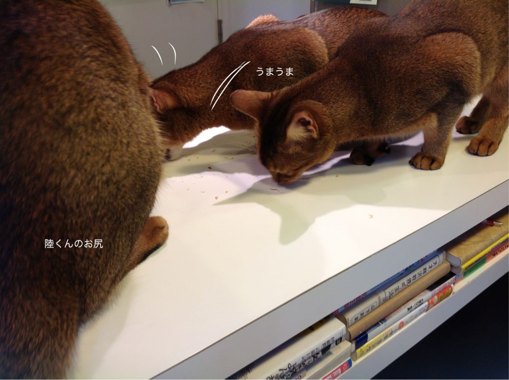 なのに上手く撮れませんでしたが、陸くん、祭ちゃん、海ちゃんの美猫様たちに楽しく接待して頂いている様はわかっていただけるかと(笑)