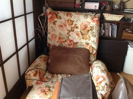 座椅子カバーがボロになったので、大昔のカーテンで作ってみました。