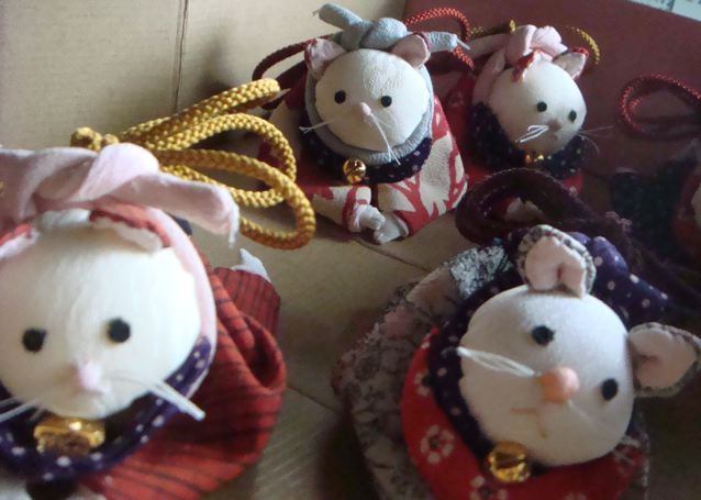 ベースは、縮緬細工の定番、はいはい人形の琴爪入れの子供の顔を猫にして、