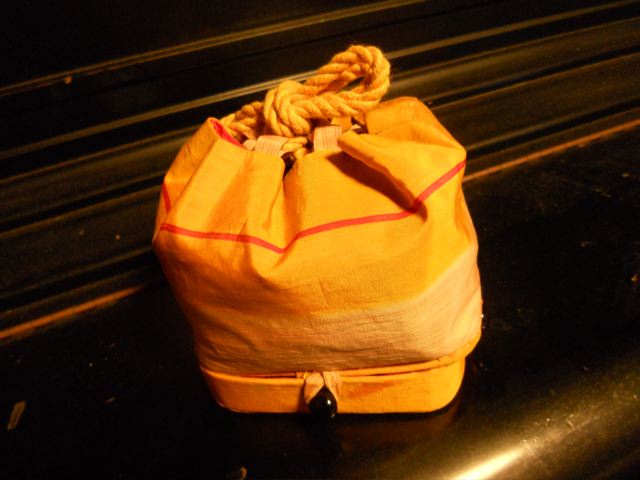 この布は本当は手ぬぐいではなくて、父親の佃のお祭りの時の帯なんですが、短く切れば手ぬぐいになるので、まあ、手ぬぐいということでいいかな。