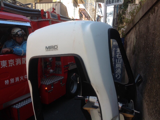 こちらは途中、救急車が病人? 怪我人?を搬送している現場に出会いました。