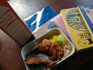参加賞とお醤油を貰って、お昼ご飯にのりからしゃけ弁当を買って帰って来ました。