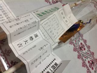 お不動様と鉄砲洲神社で破魔矢を買い、おみくじをひいてきました。