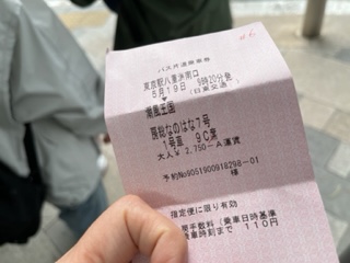 でも、サミットだし、天気悪いし、連休後だし、海水浴もまだだし、平日だし、バスはガラガラかもと舐めた態度で、切符売り場へ。