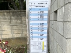 千田のバス停の時刻表ですが、1時間に一本以下。