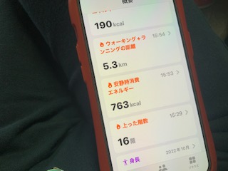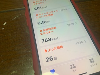 歩いた距離、歩数は予定内ですが、18階の階段登りで、翌日は腿がパンパンでした。