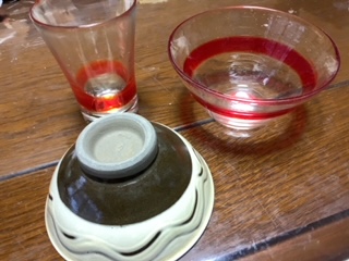 素麺用のガラス器とお茶碗とか