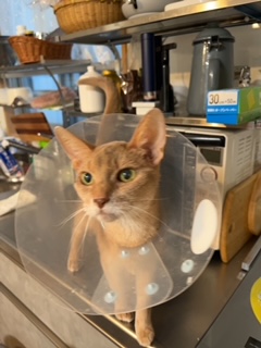 苺ちゃんはエリザベスカラーつけてずっと相手をしてくれました。