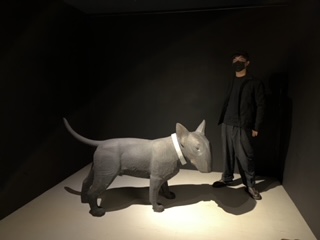 巨大ブルテリアの大きさが写真でわからなくて残念、と言ったら、中里氏らしき方が横に立ってくれました。