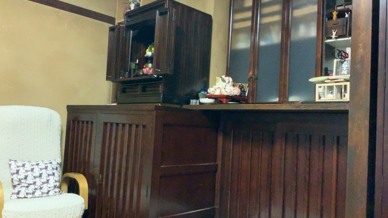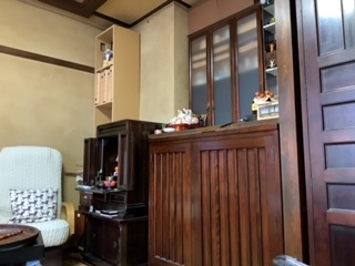 それまで、キャットウォークまでの階段代わりに使っていた戸棚を居間に戻して、少々模様替え。