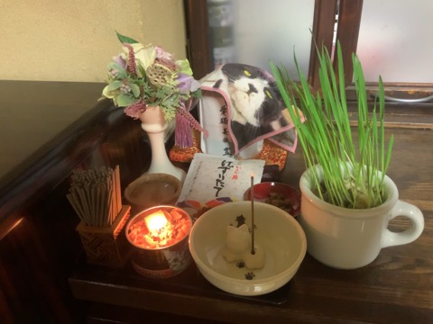 みい様が仏壇の前で寝ていたので、もう、ホットカーペットの上の猫コタツは暑かったかな、と。 薬を持って近づくと何か様子がおかしく、触ってみたら、もう、冷たくなっていました。
