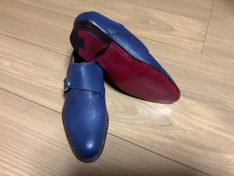 靴教室で作っていたモンクストラップの靴が、やっと出来上がりました。