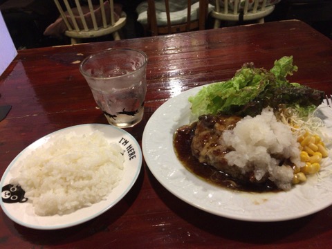 お彼岸の墓参りで、明大のそばのお店でハンバーグを頂きました。
